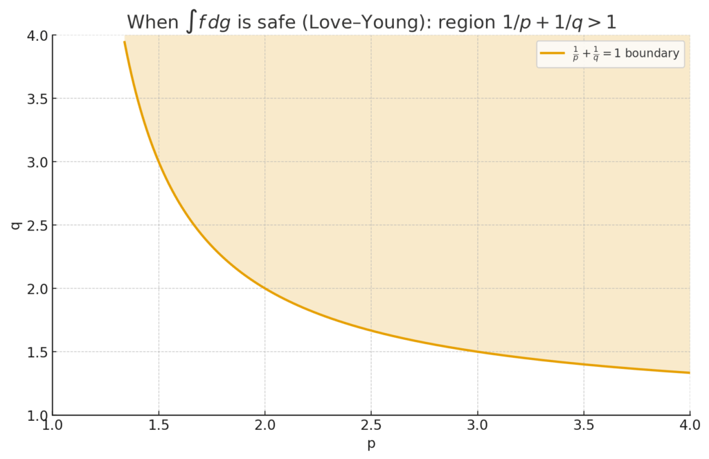 exists and is controlled (Love–Young). This is like a cousin of Cauchy–Schwarz/Hölder, but tuned to rough signals. In stats terms: it tells you when you can safely integrate (or “accumulate”) a noisy curve against another without things blowing up.